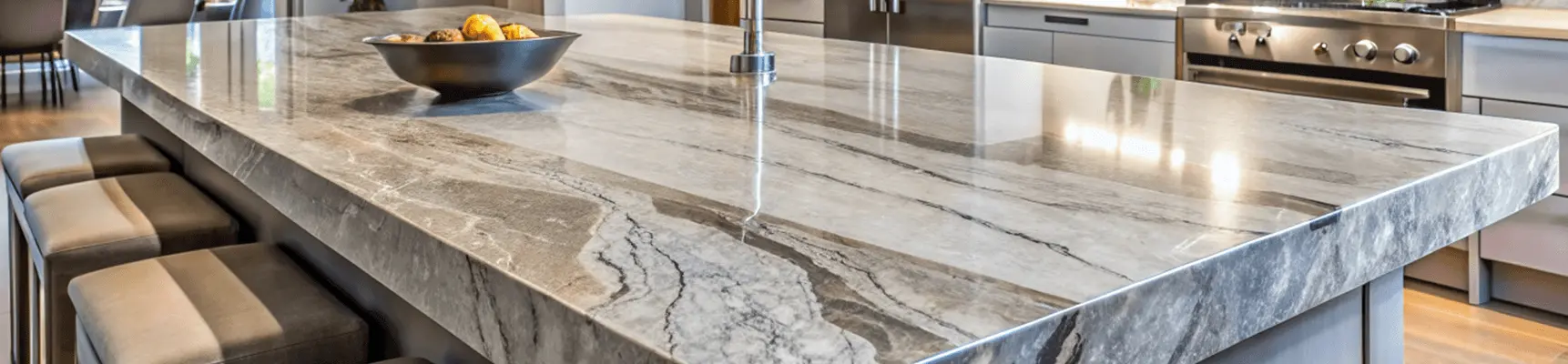 Quartzite is a hard, non-foliated metamorphic rock that was originally pure quartz sandstone. It has the look of marble but is comparatively harder and denser. Quartzite countertops are popular because of their versatility; they can be used in any decor based on their colour choices and cut possibilities. Quartzite is very resistant to scratches, except when it comes to prolonged heat. You also have to be careful to distinguish between ‘hard’ quartzite (which is the pure and durable type) and ‘soft’ quartzite (which is softer and more marble-like).